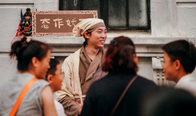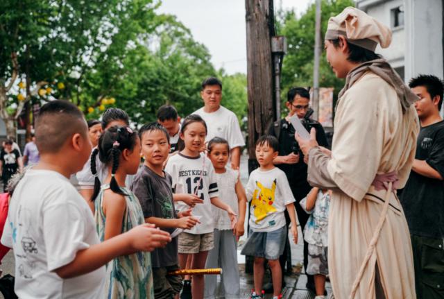 游客不只是旁觀者,還能親身體驗(yàn)“仙班”生活。在“五指山”下,給“被壓”的孫悟空送上仙果,就能得到大圣贈(zèng)送的銀票作為答謝;在十字路口,和“哼哈二將”玩一場(chǎng)有趣的“一二三木頭人”游戲;到瑤池酒樓與仙女老板娘猜拳下棋,贏了就能獲得銀票,還能解鎖專屬舞蹈;跟仙使們進(jìn)行智力闖關(guān),比如繞口令、猜燈謎、對(duì)古詩(shī),成功過(guò)關(guān)就能贏取銀票;游客用和NPC(非玩家角色)互動(dòng)贏來(lái)的銀票,還能在 “通天簽發(fā)司”兌換各種禮品。“這些神仙就像鄰家朋友換裝出來(lái)玩耍一樣?!庇慰屠钔瑢W(xué)笑著展示自己贏的銀票,“闖關(guān)、猜謎、對(duì)詩(shī),感覺(jué)自己也成了神話里的一員。”游客沈先生感慨道:“讓每個(gè)人都成為‘戲中人’,老故事在光影中變得如此年輕且充滿活力!”
