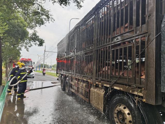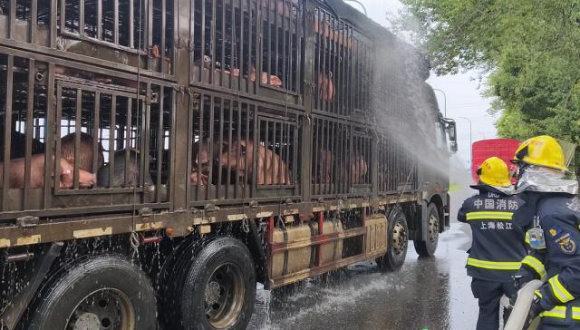 130多頭生豬中暑,松江消防澆水降溫成功救援