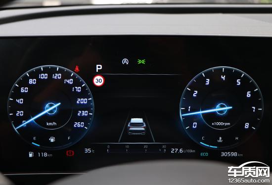 評測車配備由液晶儀表和中控屏組成的雙12.3英寸沉浸式一體曲面屏。雖屏幕分辨率為720P不算高,但實際觀感不錯,畫面顆粒感不明顯。系統(tǒng)操作流暢,無遲滯或卡頓。液晶儀表布局規(guī)整,能顯示豐富行車信息,支持3種主題切換,還可設(shè)置為‘駕駛模式聯(lián)動’,隨駕駛模式自動變更主題。