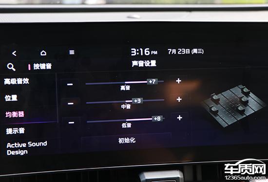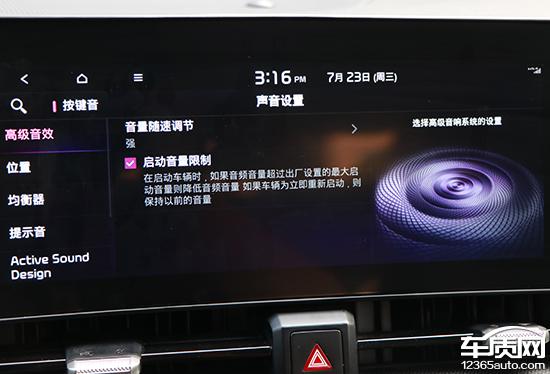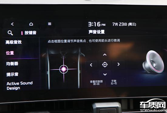 評測車配備Harman/Kardon哈曼卡頓音響系統(tǒng),有8個揚聲器。系統(tǒng)提供豐富聲音設(shè)置和功能調(diào)節(jié),如音量隨速調(diào)節(jié)、聲音焦點等。