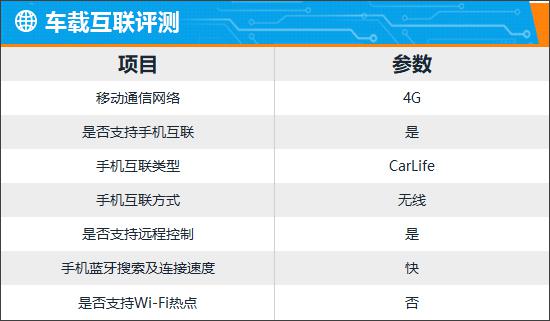 評測車支持4G車聯(lián)網(wǎng)和手機APP遠程功能,手機藍牙搜索和連接速度快,使用體驗好。但手機互聯(lián)僅支持CarLife,適配性一般。