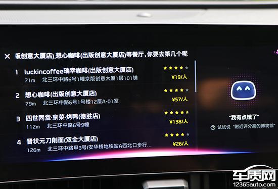 實測模糊語義識別時,說‘我有點餓了’,系統(tǒng)會導航到附近咖啡店和餐館;但對‘我有點累了’等指令,系統(tǒng)反應不佳,模糊語義識別能力弱,交互體驗差。