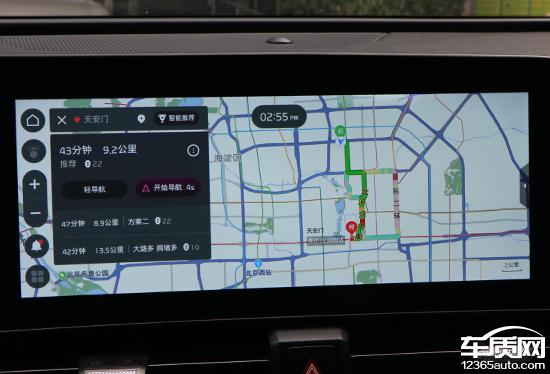 確認目的地后,系統(tǒng)提供三條路線,基于車聯(lián)網(wǎng)可顯示擁堵情況。除中控屏,液晶儀表也能顯示導航信息,但內(nèi)容較簡潔。
