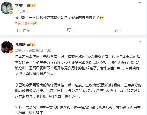 媒體人王健發(fā)文稱:黎巴嫩隊迎來一場酣暢淋漓的勝利,顯然他們從上一場對陣韓國隊的失利中吸取了很多經(jīng)驗(yàn)。今天無論是防守端對重點(diǎn)球員的限制,還是進(jìn)攻端球的運(yùn)轉(zhuǎn),都發(fā)揮出了自身特點(diǎn),勞森也打出了亞洲杯以來的最佳表現(xiàn)。