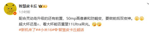 小米16 Ultra再曝光:前置影像升級,有高像素與靈動島