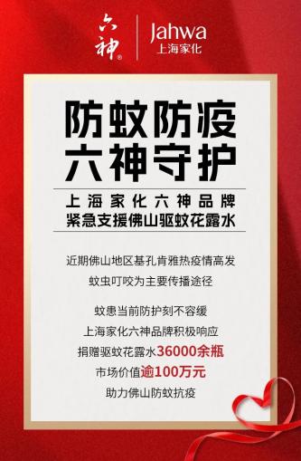 為應(yīng)對佛山地區(qū)的基孔肯雅熱病毒感染問題,阻斷蚊蟲叮咬這一傳播途徑,上海家化迅速行動(dòng),向佛山地區(qū)捐贈(zèng)了超過36000瓶六神驅(qū)蚊花露水,市場價(jià)值超過100萬元。這些物資通過當(dāng)?shù)卮壬茩C(jī)構(gòu)及時(shí)發(fā)放,為當(dāng)?shù)厝罕娞峁┝碎L效的驅(qū)蚊防護(hù),有效降低了病毒傳播的風(fēng)險(xiǎn)。
