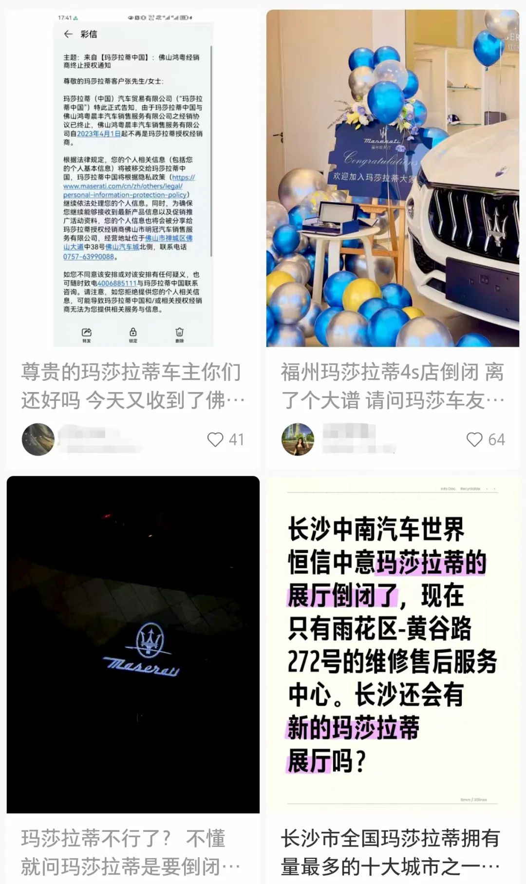 不少車主吐槽瑪莎拉蒂“維修難”,甚至要去鄰省保養(yǎng)。(圖/社交平臺(tái)截圖)