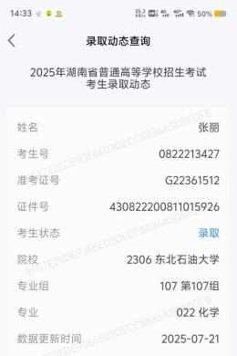 老劉在海上鉆井平臺激動得拍紅了大腿,連夜找出她想報考的東北石油大學(xué)往年在湖南的錄取線,陪她一項項對比專業(yè)排名。