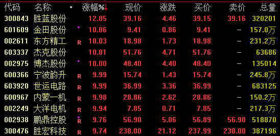 人形機器人概念再度活躍,截至收盤,勝藍股份漲近13%,金田股份、東方精工、杰克股份、博杰股份、內(nèi)蒙一機等均漲停,勝宏科技漲近10%,中大力德漲約6%。其中,杰克股份、內(nèi)蒙一機、勝宏科技、中大力德等均續(xù)創(chuàng)新高。