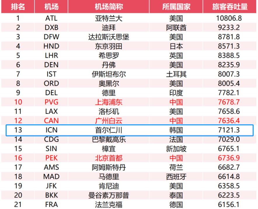 據(jù)韓國媒體BusinessKorea報(bào)道,仁川機(jī)場近年擴(kuò)建了第二航站樓(T2),提升了旅客處理能力。去年,仁川機(jī)場運(yùn)送了7067萬名國際旅客,在全球國際旅客吞吐量排名中位列第三,僅次于阿聯(lián)酋的迪拜機(jī)場和英國的希思羅機(jī)場,今年旅客數(shù)量預(yù)計(jì)還將創(chuàng)歷史新高。