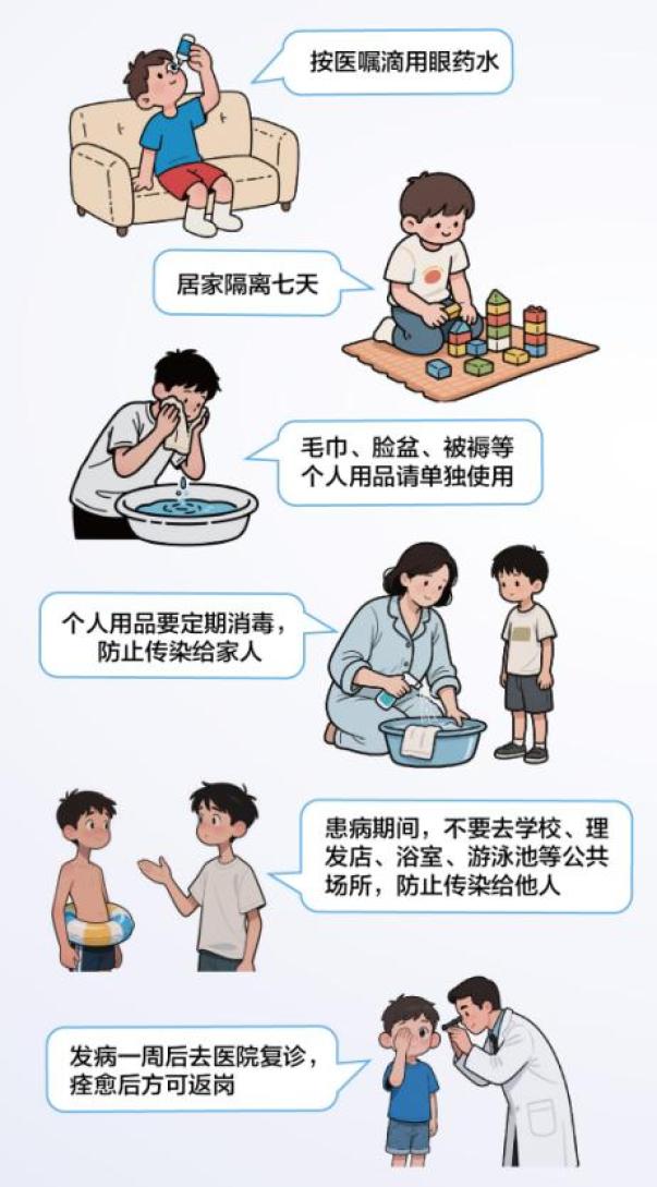 二、經(jīng)確診為“紅眼病”的患者,隔離期不少于7天,主要癥狀消失即可解除隔離。
