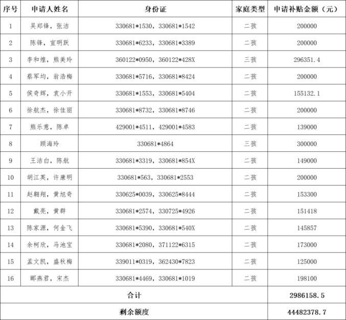 重磅!諸暨第二批多孩家庭購房補(bǔ)貼名單公示