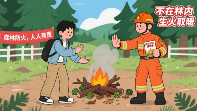 不準(zhǔn)在林內(nèi)生火取暖和烤衣服,林區(qū)的每簇小火苗,都可能破壞綠色生態(tài)環(huán)境。