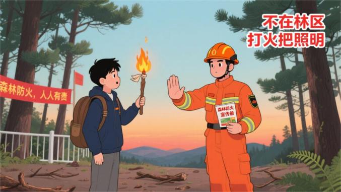 不準(zhǔn)在林內(nèi)用火照明,電筒比火把更實(shí)用,還能避免引發(fā)森林大火。