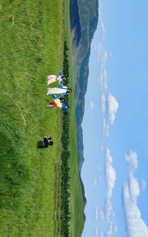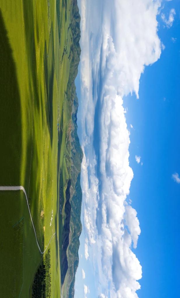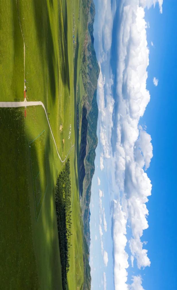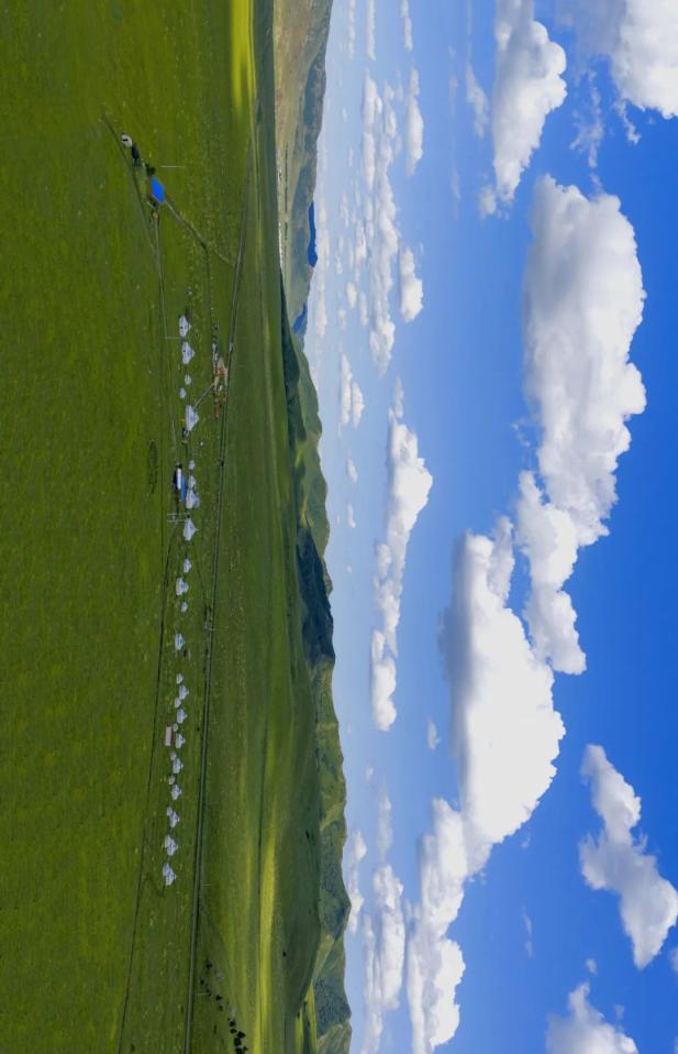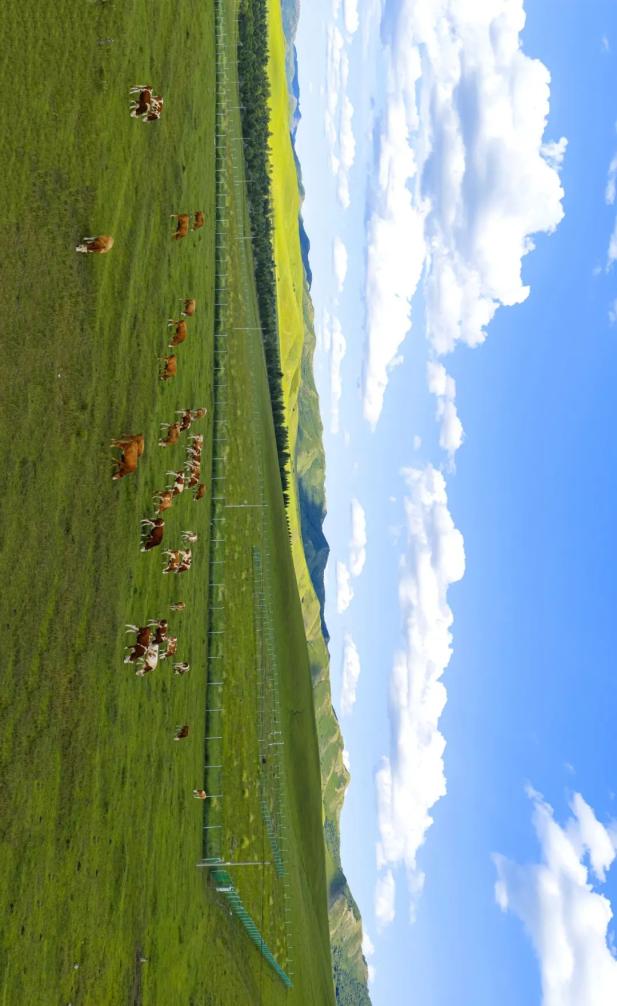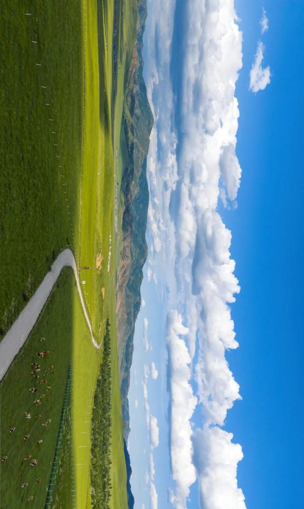 放眼望去,是廣袤無垠、宛如綠毯般的草地,五彩斑斕的野花點(diǎn)綴其中。微風(fēng)輕拂,草浪起伏,花香撲鼻。牛群悠閑地散落在綠毯之上,甩著尾巴,愜意地啃食著青草。錯落有致的蒙古包,與藍(lán)天白云、連綿青山相互映襯,構(gòu)成了一幅美輪美奐的畫卷。