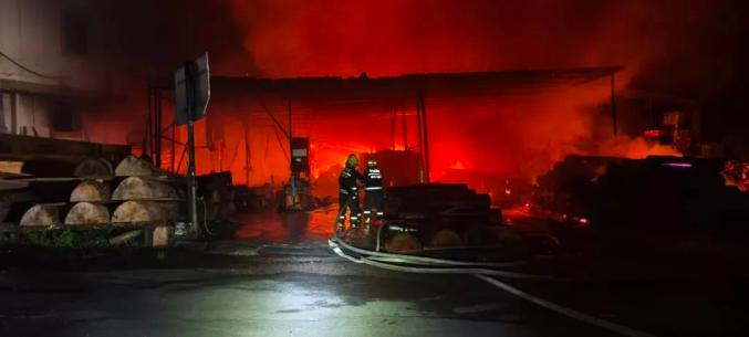 8月7日01時44分,盤州市劉官街道一廢品回收站起火,并引燃旁邊的木材廠。
