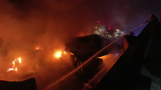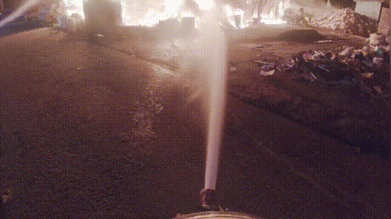 指揮員立即下達作戰(zhàn)任務,滅火組利用水槍控制現(xiàn)場火勢,防止火勢繼續(xù)蔓延。后續(xù)力量陸續(xù)到場后,立即從不同方向鋪設水帶,全力撲救。