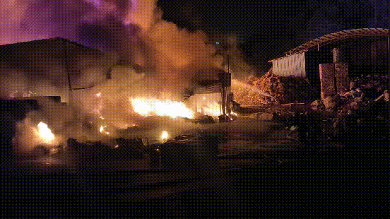 消防救援人員到達現(xiàn)場后,經(jīng)偵察確認,是廢品回收廠和木材廠露天堆放的廢棄物及木材堆起火,火勢呈蔓延趨勢。