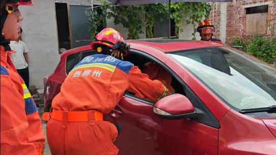 幼童被困密閉車內,媽媽焦急,消防緊急救援