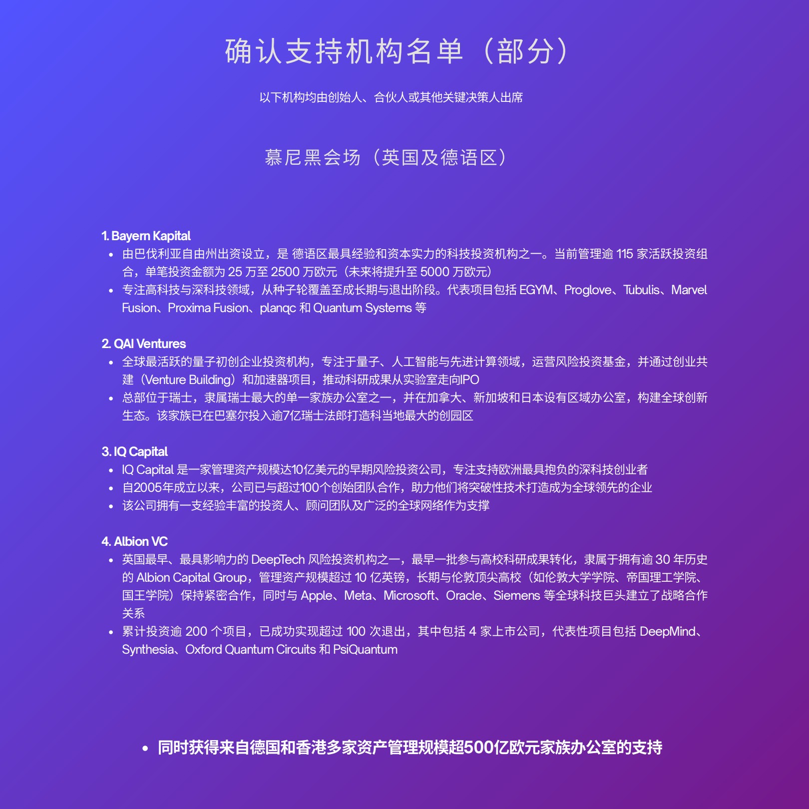 - QAI Ventures:全球最活躍的量子科技投資者,背后有瑞士最大的單一家族辦公室之一的支持。