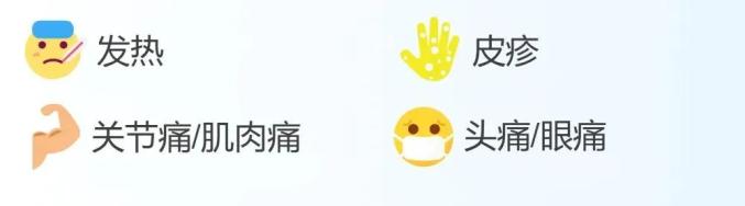 若您或家人近期有基孔肯雅熱流行地區(qū)旅居史,外出結(jié)束后2周內(nèi)主動(dòng)做好自我健康監(jiān)測(cè),若出現(xiàn)以下癥狀: