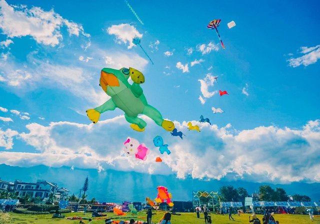 活動現(xiàn)場有品類豐富的紙鳶市集,讓您感受大理的慢節(jié)奏與文藝氣息,體驗文化與生態(tài)結(jié)合的旅游新方式?;顒訒r間為每天10:00 - 19:00。主辦方準(zhǔn)備了風(fēng)箏節(jié)專屬卡通風(fēng)箏贈送。特色動漫、國風(fēng)主題風(fēng)箏的銷售,是遛娃的好地方,能讓您和家人在洱海邊留下美好回憶。