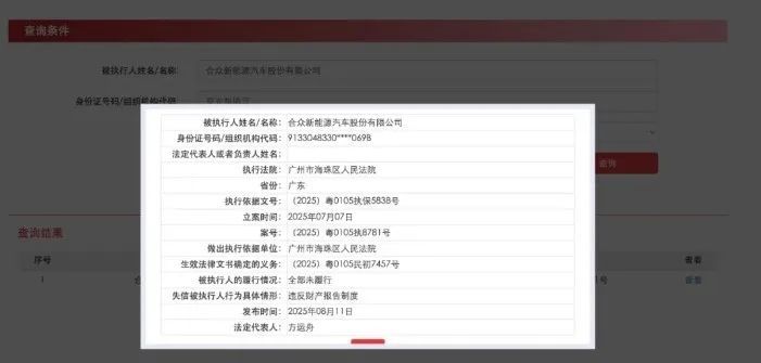 前不久,哪吒汽車關(guān)聯(lián)公司——合眾新能源汽車股份有限公司(合眾新能源)因違反財產(chǎn)報告制度,被廣州市海珠區(qū)人民法院列為失信被執(zhí)行人。