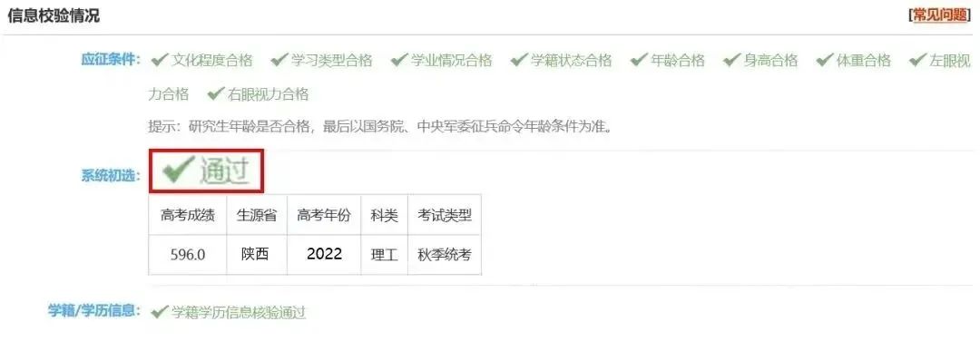 如果系統(tǒng)顯示“通過”,恭喜你,已經晉級為初選預征對象。請保持電話暢通(注意:是在全國征兵網報名時所留的電話哦)。