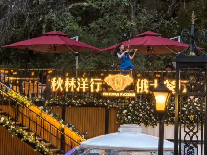 區(qū)文旅局還巧妙地將俄式美食融入文化體驗中。路線引導(dǎo)游客走進(jìn)街區(qū)內(nèi)的馬迭爾精釀啤酒屋、塔瑪拉格魯吉亞餐廳等,推薦品嘗罐牛、紅菜湯配大列巴的經(jīng)典組合,讓醇厚的肉香與酸甜的滋味在百年建筑的環(huán)繞下,升華了異域風(fēng)情。