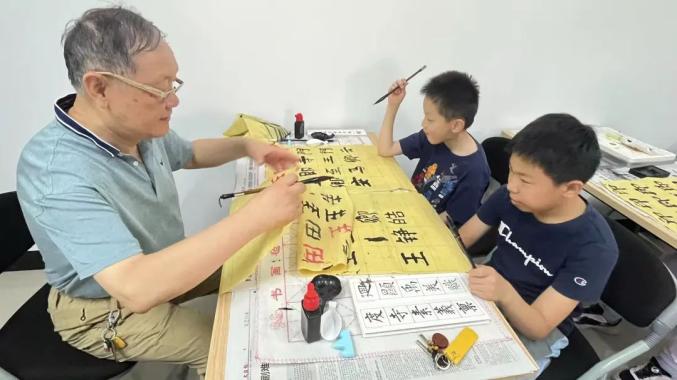 書法與繪畫課程在多個社區(qū)同時開展。華沁、長橋新村一居委、體育花苑、長橋八村、徐匯新城等居委會的活動室里,墨香四溢,孩子們在老師的指導(dǎo)下體驗筆法節(jié)奏和結(jié)構(gòu)布局,在一筆一畫中培養(yǎng)靜心和專注。匯瀾園居委會開展毛筆制作課,從毛筆的起源講起,講述古老技藝,激發(fā)孩子們對傳統(tǒng)文化的濃厚興趣。
