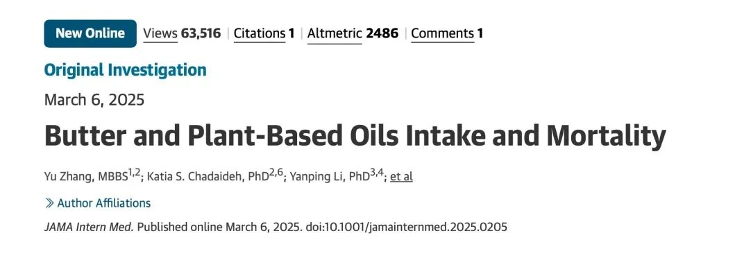 ②Butter and Plant - Based Oils Intake and Mortality. JAMA Intern Med. Published online March 6, 2025. doi:10.1001/jamainternmed.2025.0205