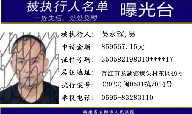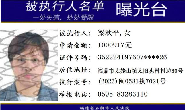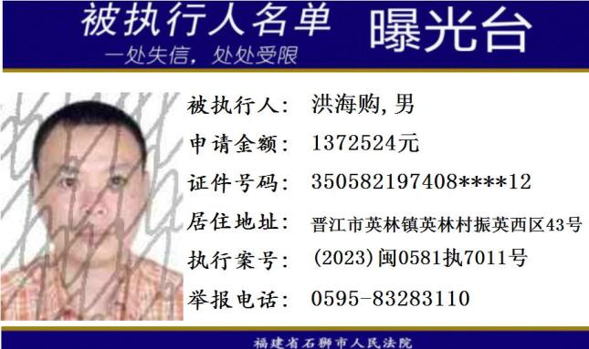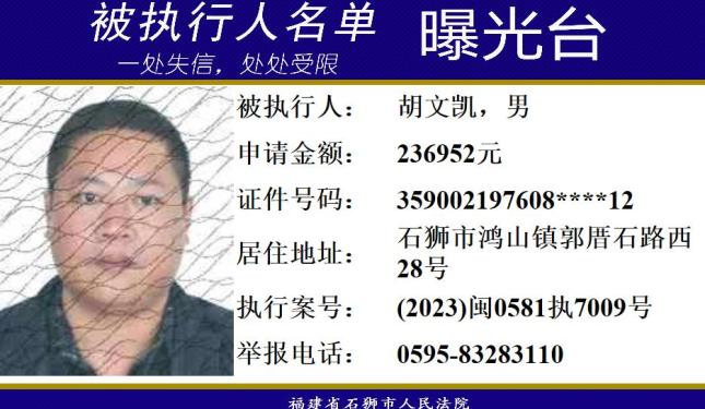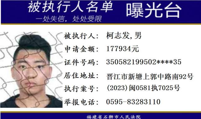 凡舉報石獅法院決定拘留的被執(zhí)行人的位置,協(xié)助我院實際拘留到人(自然人的,為其本人;單位的,則為其主要負責人或者直接責任人員)的,按500元/人的標準給予舉報人獎金,已被石獅法院采取拘留措施并正在執(zhí)行的除外。