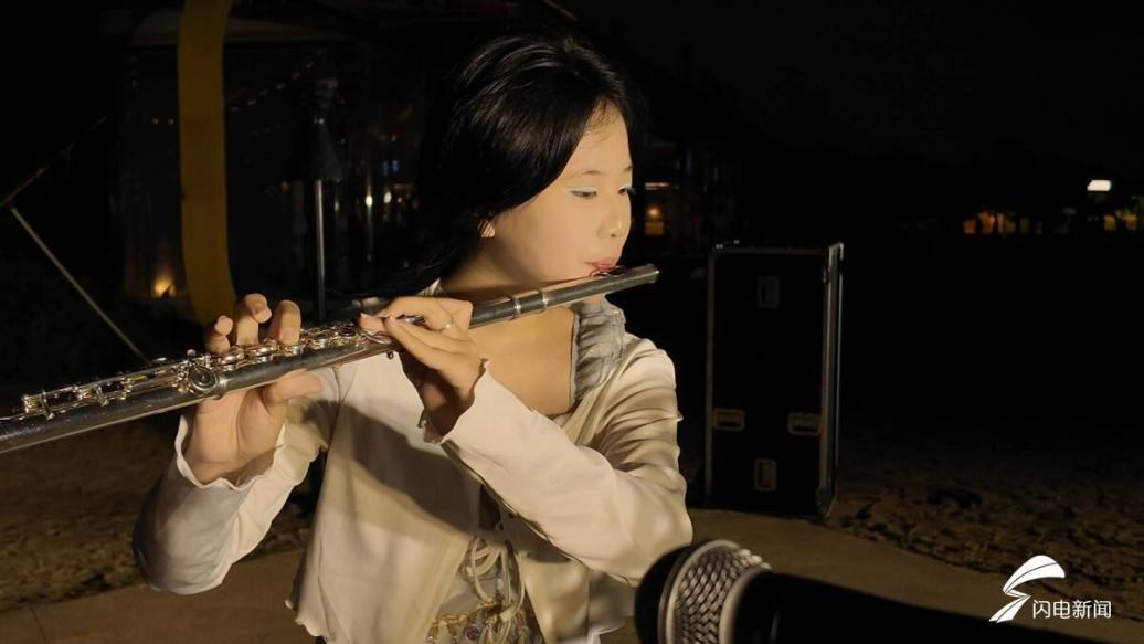 在萬平口景區(qū),小號(hào)獨(dú)奏《威尼斯狂歡節(jié)》熱情奔放,金色號(hào)管中躍動(dòng)的音符精彩綻放;長(zhǎng)笛演繹的《大魚》空靈澄澈,清透的旋律如同月光下群魚擺尾泛起的漣漪;8人長(zhǎng)笛四重奏《卡農(nóng)》如溪流匯海,為演出增添了溫柔的色彩。