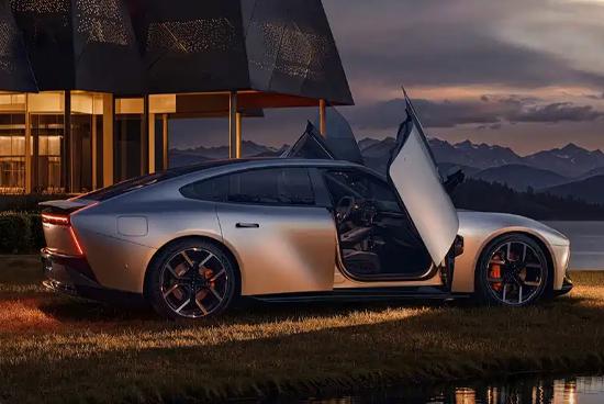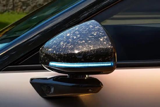 新車側(cè)面最引人注目的當(dāng)屬鷗翼門設(shè)計(jì),這種設(shè)計(jì)在當(dāng)下十分罕見。此外,新車還配備了專屬21英寸鍛造輪轂、碳纖維飾板以及碳纖維后視鏡,進(jìn)一步增強(qiáng)了側(cè)面的運(yùn)動(dòng)氛圍。