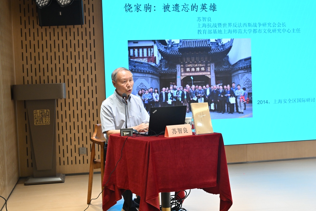 當(dāng)天,上??箲?zhàn)研究會會長、上海市文史研究館館員蘇智良教授帶著新書《饒家駒:被遺忘的英雄》來到現(xiàn)場分享,在抗戰(zhàn)勝利80周年的重要節(jié)點,帶領(lǐng)讀者回顧那段波瀾壯闊的歷史。