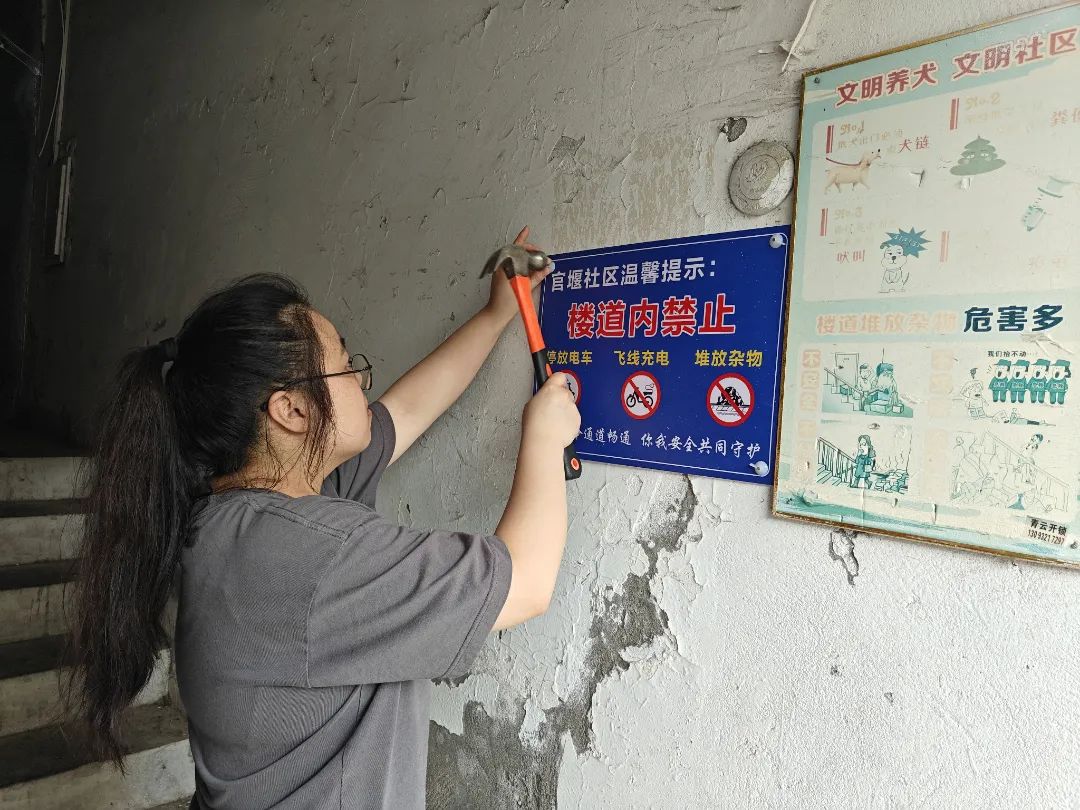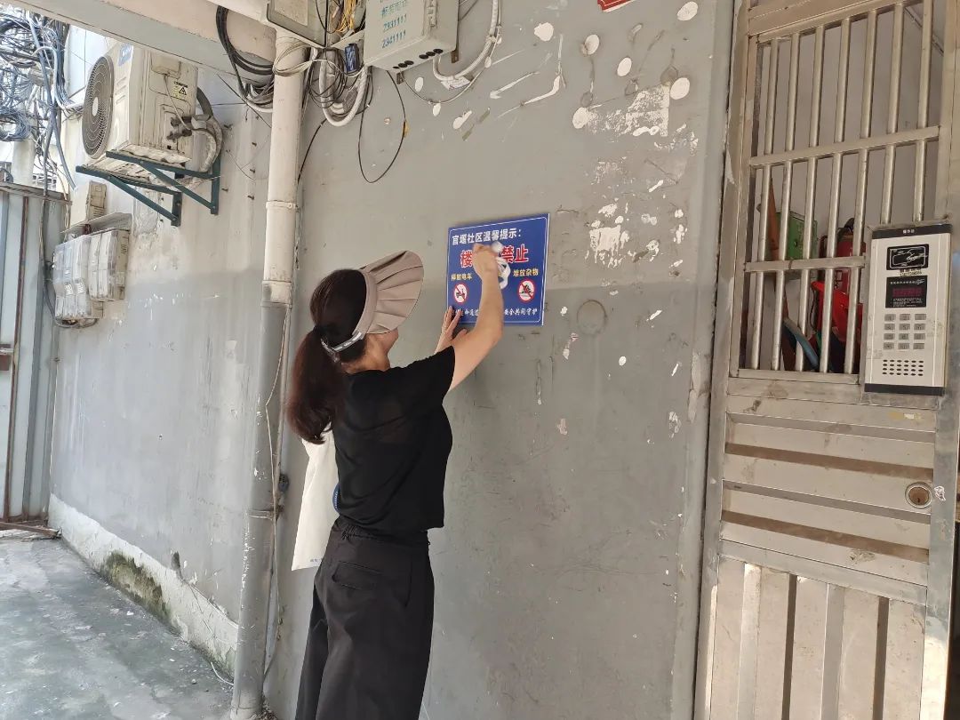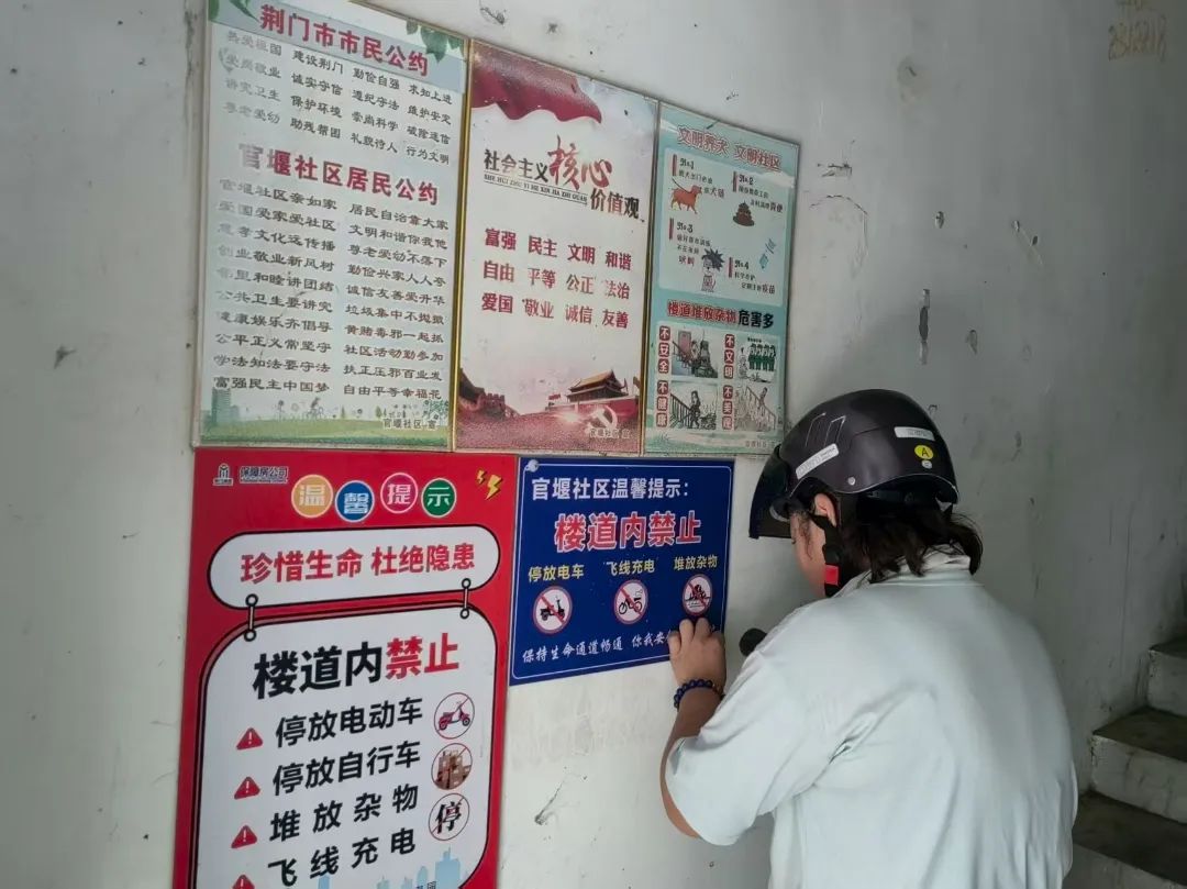 荊門市白廟街道官堰社區(qū)張貼樓道安全警示牌,守護(hù)社區(qū)安全