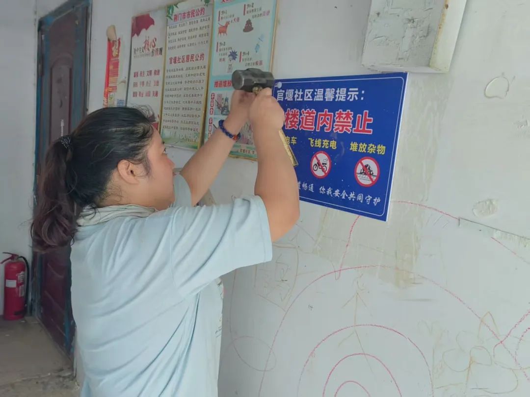 為強(qiáng)化社區(qū)消防安全管理,消除樓道安全隱患,保障居民生命財(cái)產(chǎn)安全,近日,官堰社區(qū)安排社區(qū)工作人員深入各網(wǎng)格,在樓道張貼安全警示牌,著重對(duì)雜物堆放和電動(dòng)車停放問題進(jìn)行規(guī)范與警示。