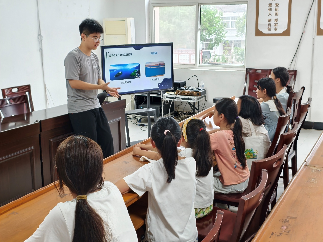 同樣依托“湖泊盒子”體系,團(tuán)隊(duì)成員因地制宜增加了“防溺水安全知識(shí)”“飲用水安全”等內(nèi)容,既豐富了留守兒童的假期生活,又讓孩子們接觸課外知識(shí)、體驗(yàn)科學(xué)實(shí)驗(yàn),彌補(bǔ)了鄉(xiāng)村青少年生態(tài)知識(shí)普及的不足。“作為環(huán)境專(zhuān)業(yè)學(xué)生,來(lái)到鄉(xiāng)村進(jìn)行科普實(shí)踐,不僅提升了我們的專(zhuān)業(yè)應(yīng)用能力,更讓我們?cè)谂c中小學(xué)生的互動(dòng)中,深刻增強(qiáng)了生態(tài)保護(hù)的社會(huì)責(zé)任感?!蹦暇┕I(yè)大學(xué)本科生劉少春的感悟代表了團(tuán)隊(duì)的心聲。