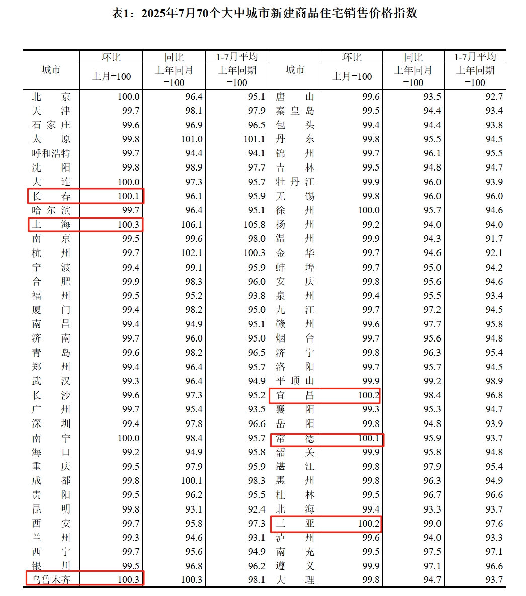 一線城市中,環(huán)比6月份的銷售價(jià)格,北京持平,上海上漲0.3%,廣州和深圳分別下降0.3%和0.6%。二線城市中,三亞新房銷售價(jià)格已經(jīng)連漲4個(gè)月。