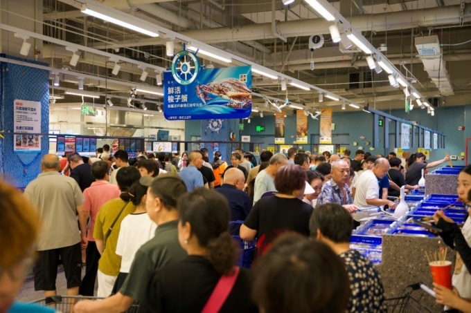 8月15日,麗水盒馬鮮生的首家門店——銀泰城店正式開業(yè)。早上9點半,店門前就排起了長長的隊伍,消費者們都在等待進店購物?,F(xiàn)場商品價格實惠,9.9元的日日鮮牛奶、29.9元佳沛的新西蘭金果、49.9元一盒的榴蓮千層蛋糕、599元一只的俄羅斯冷水金帝王蟹等,吸引了眾多當?shù)叵M者,不少貨架一度被搶購一空,工作人員只能臨時補貨。