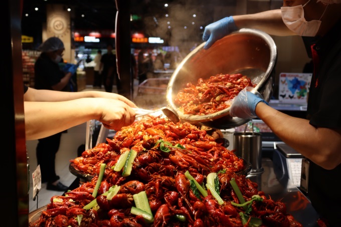 烘焙熟食區(qū)也成了人氣焦點(diǎn),調(diào)改后區(qū)域面積占比從10%提升到35%。特別推出符合重慶人口味的減糖黑芝麻麻薯、榴蓮千層與核桃滿滿歐包,香氣四溢;熟食爆款香辣小龍蝦經(jīng)過(guò)四道清洗工藝,蝦肉吸滿“辣中回甘”的秘制鹵汁,嘬殼時(shí)麻鮮瞬間迸發(fā),完美復(fù)刻地道重慶夜市煙火氣。