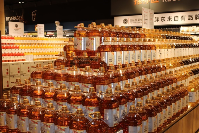 胖東來(lái)自有品牌及永輝自有品牌專區(qū)是奧園城市天地店的人氣焦點(diǎn)區(qū)域,東來(lái)專區(qū)集中陳列DL燕麥脆、精釀啤酒等50余款網(wǎng)紅單品。
