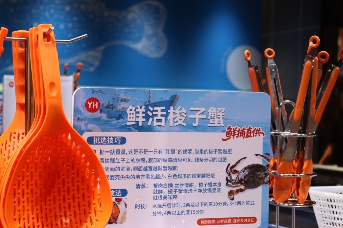 水果區(qū)借“永輝2025新疆水果節(jié)”的東風(fēng),主推新疆直采的甜度超20度的爆漿西梅,雪水灌溉與20℃晝夜溫差讓其帶有獨(dú)特花香蜜香,同時(shí)集結(jié)多種地標(biāo)鮮果打造精品矩陣。水產(chǎn)區(qū)升級(jí)了循環(huán)養(yǎng)殖系統(tǒng),讓活鮮更鮮活,還引進(jìn)了更多深海魚品項(xiàng)。今夏開(kāi)海季主打鮮活梭子蟹,青殼白肚金爪,黃滿膏肥,入口滿是海洋的鮮甜。