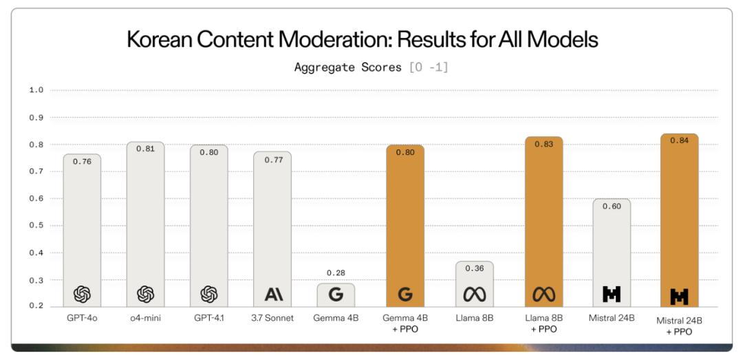 輕量化模型在現(xiàn)實(shí)應(yīng)用中的強(qiáng)大威力已得到充分展現(xiàn)。2025年7月,Adaptive ML與SK Telecom合作,面對(duì)復(fù)雜的多語(yǔ)言?xún)?nèi)容審核挑戰(zhàn),他們沒(méi)有用龐大的通用模型,而是對(duì)Gemma 3 4B模型進(jìn)行針對(duì)性微調(diào)。結(jié)果很驚艷,微調(diào)后的專(zhuān)用Gemma模型不僅滿(mǎn)足目標(biāo)任務(wù)要求,還在特定任務(wù)上超越了許多大體量的專(zhuān)有模型。