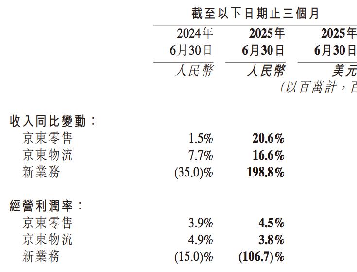 財報顯示,京東零售收入Q2同比增速是20.6%(Q1增速為16.3%),實物商品收入增速是20.7%,重回兩成以上增速區(qū)間,主要是國補(bǔ)和自然增長的結(jié)果,少部分是外賣拉動的。Q2外賣所在的新業(yè)務(wù)收入同比增加92億元,增幅接近200%。但外賣新業(yè)務(wù)同比增加的107.6億元成本,已覆蓋相應(yīng)收入增量,其147.8億元的經(jīng)營虧損基本都來自經(jīng)營費用增量127.6億元,如外賣營銷投入。