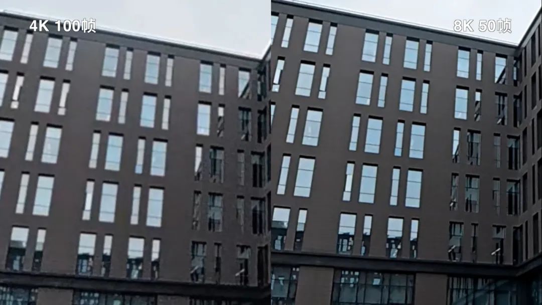 在全景視頻模式下,這臺全景相機最低支持4K100幀(PAL下),最高支持8K50幀,且不支持1080P。在8K50幀拍攝規(guī)格下,放大細節(jié)查看,畫質(zhì)完全夠用。對比4K100幀,在同一場景下放大,8K50幀畫面更清晰,4K100幀畫面則稍顯不足。