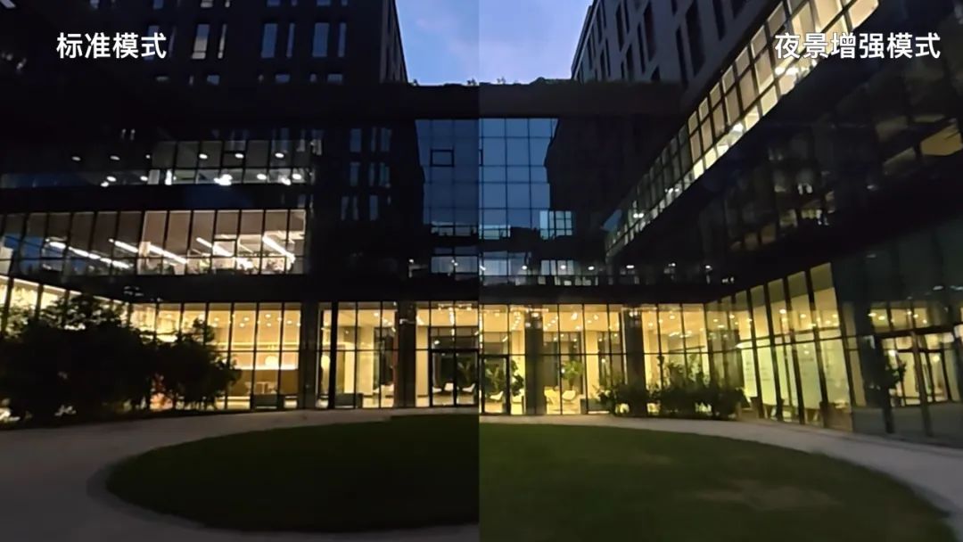 大疆在全景視頻模式下加入了夜景增強模式,與普通模式拍攝內(nèi)容對比,其在噪點控制和清晰度方面表現(xiàn)出色。
