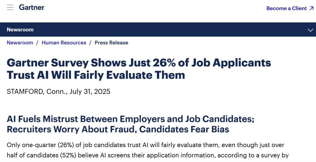 https://www.gartner.com/en/newsroom/press-releases/2025-07-31-gartner-survey-shows-just-26-percent-of-job-applicants-trust-ai-will-fairly-evaluate-them