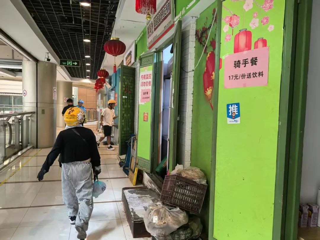 整個商場的業(yè)態(tài)很統(tǒng)一,除了一家專賣騎手餐的堂食店,其他都是只做外賣、不做堂食。騎手餐每份18元,還有免費(fèi)綠豆湯,但午餐時間無人光顧,老板娘淡定地說:“你下午三點(diǎn)再來,都是小哥?!?/p>