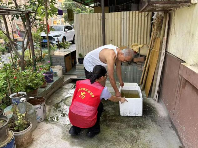 活動(dòng)前,社區(qū)工作人員通過微信群普及基孔肯雅熱傳播、危害及清積水重要性,提高居民參與積極性。活動(dòng)中,網(wǎng)格員組成清理小分隊(duì),對社區(qū)角落進(jìn)行拉網(wǎng)式排查,清理花盆托盤、閑置水桶、廢棄輪胎和排水溝積水,消除蚊蟲滋生地。